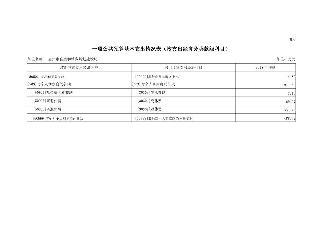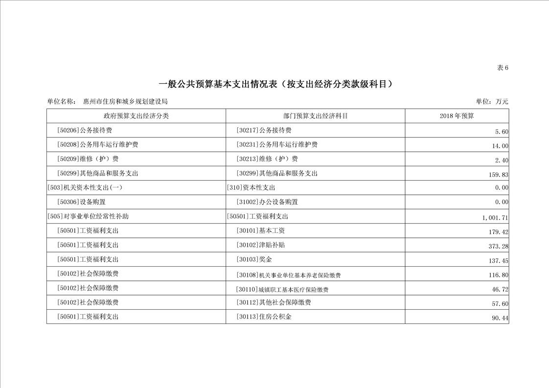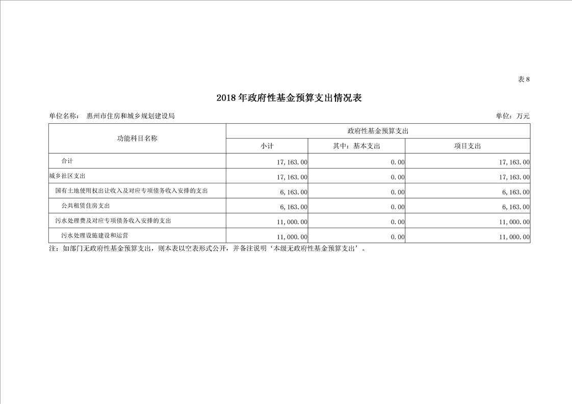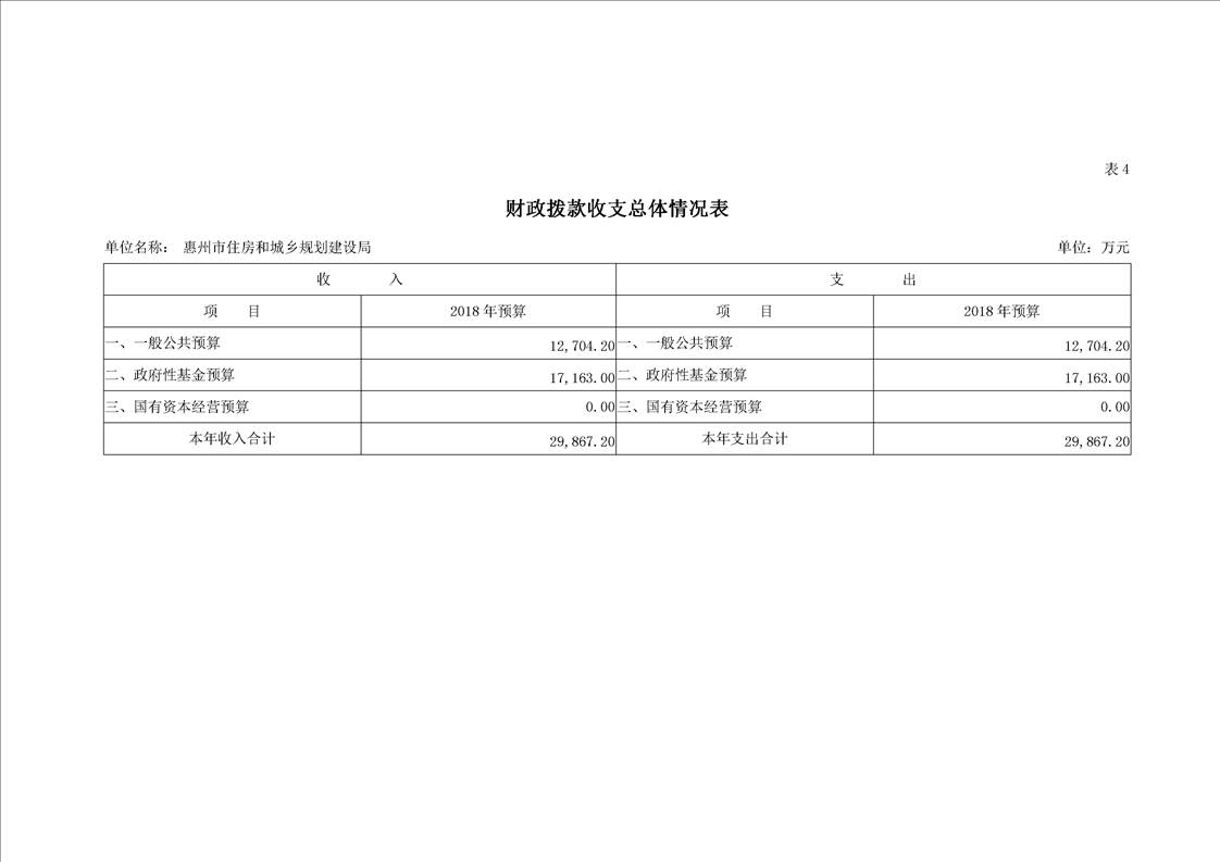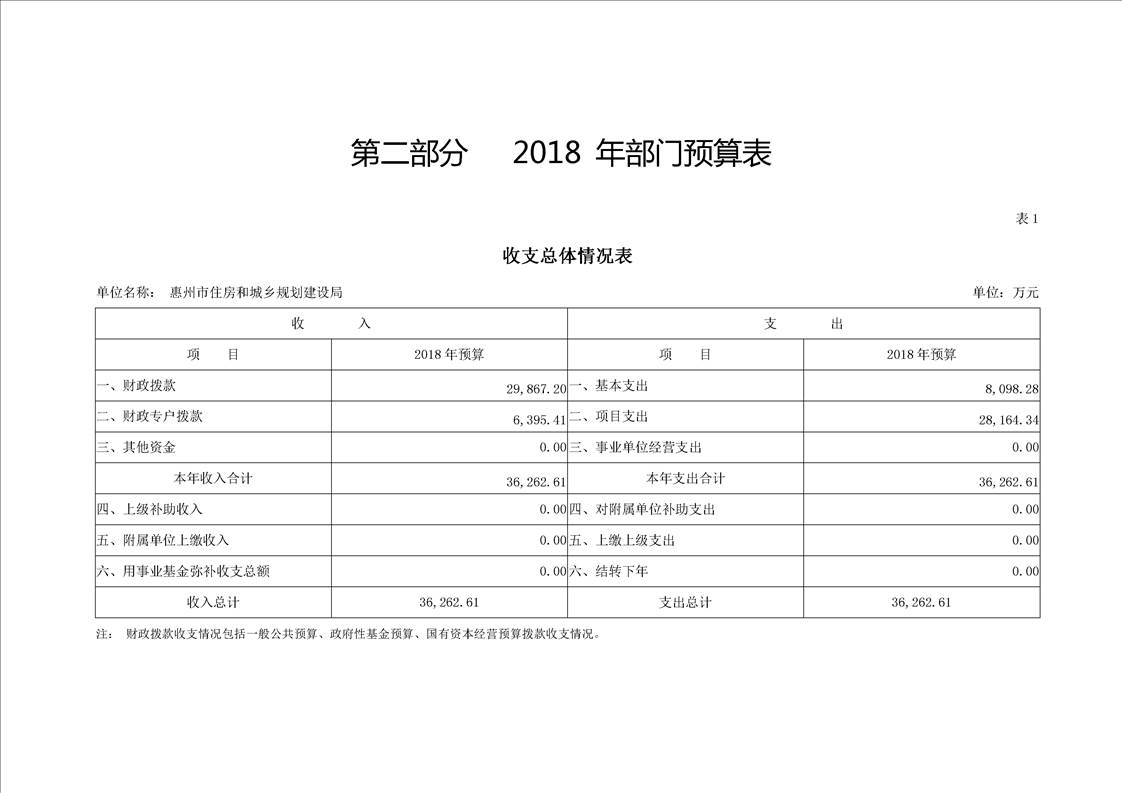 惠州市住房和城鄉規劃建設局2018年度部門預算公開