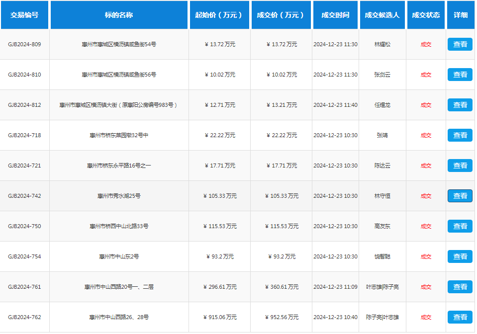 惠州市機(jī)關(guān)事務(wù)管理局672宗不動產(chǎn)轉(zhuǎn)讓部分成交結(jié)果公示