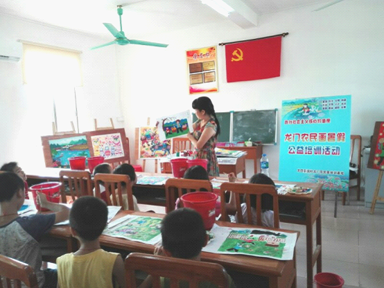 龍門農民畫公益培訓一直是龍門縣文廣新局的常態化工作品牌。龍門縣文廣新局在今年暑期組織農民畫畫家先后到全縣各鄉鎮文化站、綜合文化服務中心對青少年進行農民畫繪畫輔導和培訓,不僅讓青少年傳承龍門農民畫這一特色文化品牌,而且通過農民畫對青少年進行社會主義核心價值觀教育,讓優秀傳統文化藝術扎根下一代,提升青少年的審美感受,引導青少年感悟龍門農民畫的藝術美,以真、善、美教育為主,以農民畫為載體,讓青少年寓教于樂、寓教于畫中,培養青少年熱愛家鄉、熱愛祖國的情懷。