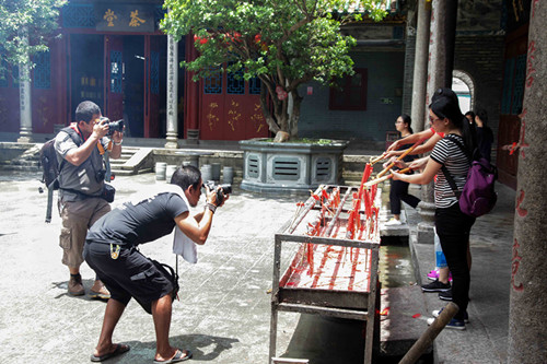 7月15日,來自印尼的三位攝影師齊聚惠州,開展為期兩天的攝影采風活動。攝影師在惠州市文化館工作人員及惠州本土攝影師陪同下,飽覽惠州山水、了解本土風物人情,并用攝影機拍下了惠州西湖的迷人夜景及中國道教圣地羅浮山的動人風姿。