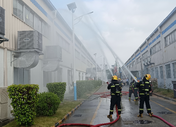 現場演練前動員 演練以桌面推演、現場演練兩種形式開展。演練期間一是宣貫《突發環境事件應急管理辦法》《企業突發環境事件隱患排查和治理工作指南》等文件,強調參會企業應壓實主體責任,落實環境安全隱患排查整治、常態化使用廣東省環境應急綜合管理系統等環境應急管理要求;二是推演在不同等級應急響應的情景設定下,企業、部門如何開展應急響應,進一步加深各參演單位對企業突發火災事故的應急處置方式、政企聯動應急處置機制的了解。三是現場演練消防滅火、廠內外事故污水應急監測、污水強化處理、事故污水轉輸等科目,鍛煉了應急救援隊伍,磨合了政企聯動應急處置機制,提升了環境風險防控能力。