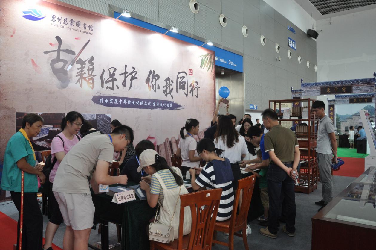 為期五天的2019南國書香節暨第九屆惠州書展于8月20日下午在市會展中心降下帷幕?;葜荽仍茍D書館作為參展單位之一,以“古籍保護 你我同行”為主題,通過將入選廣東省珍貴名錄的《人天共寶》、《杜詩集說》、《羅浮山志會編》和新入藏的《東坡寓惠集注釋四卷》四部珍稀古籍公開亮相,推出古籍翻印本和古籍數字化成果“惠州古籍文獻全方數據庫”現場展示,開展雕版印刷、仿真古籍裝訂和古籍修復演示等體驗活動,將惠州市古籍普查成果以生動、直觀的方式向廣大市民作出了深入人心的推廣,活動期間,本展區一直人頭攢動、川流不息。同時,我館結合本次南國書香節“悅讀?為祖國喝彩”的主題,以讀者需求為導向,設置自助辦證機和“惠州慈云圖書館現采現借服務點”,推出“云書U閱”和“你選書 我買單”線上、線下讀者薦購活動,其中“云書U閱”線上活動因便捷、時尚受到了廣大市民的熱烈追棒,成功注冊的讀者只須登錄本館借閱平臺,即可從中挑選符合需求的新書,直接下單后由京東物流快遞到家。經統計,活動期間我館展區共接待讀者6000余人次,讀者薦購活動約有420人參與,借出圖書1117冊。