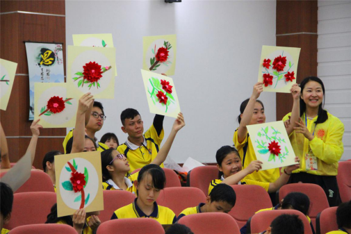 我館的文化志愿者們在現場教學生們制作牡丹花手工畫,學生們天馬行空極具創意,創作出一幅幅色彩斑斕的美麗手工畫作。隨后,在文化志愿者們的引導下120多名學生們一同將手中寫著夢想的紙飛機放飛在校園的上空。一架架五顏六色的紙飛機,承載著學生們夢想與對未來的美好向往,飛向了蔚藍的天空。
