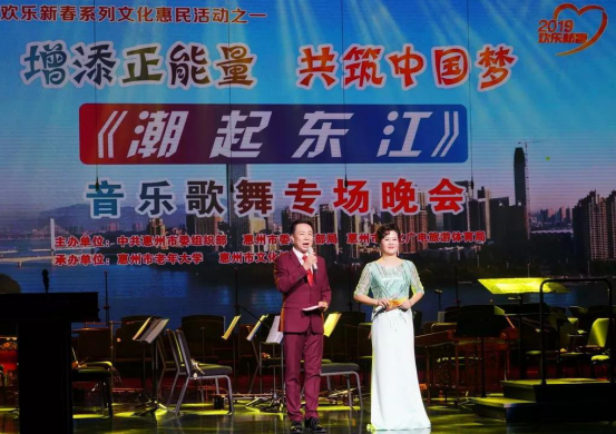 為了弘揚惠州悠久的歷史文化,為歷史名城、文化惠州增彩,為爭創國內一流城市出力,由中共惠州市委組織部、惠州市委老干部局、惠州市文廣新局主辦,由惠州市老年大學、惠州市文化館承辦的“增添正能量 共筑中國夢——《潮起東江》音樂歌舞專場晚會”在惠州文化藝術中心歌劇院圓滿落幕。