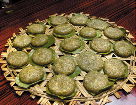 “粄”為客家方言里各類糯米、粘米糕點的通稱,如蘿卜粄、仙人粄。是清明粄中其中的一種,是一種美味的特色傳統小吃,屬于客家菜。用粘米粉、糯米粉、艾草等做成,因加有艾草,故具有一定的藥用保健功能。艾有消食健胃,散寒除濕,消腫散結,平喘、鎮咳、祛痰、護肝利膽的作用。