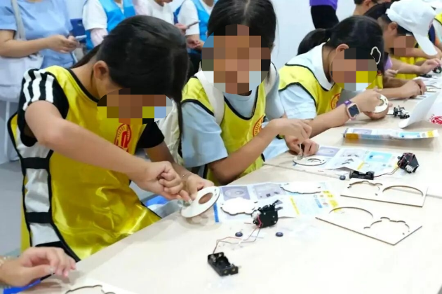 在惠州科技館,孩子們穿梭于“航空航天”“智能機(jī)器人”“力學(xué)奧秘”等主題展區(qū),通過VR設(shè)備體驗(yàn)太空漫步、操作機(jī)械臂完成拼圖任務(wù)、觀察靜電球產(chǎn)生的奇幻現(xiàn)象。在與愛心科技企業(yè)合辦的“趣味科學(xué)公益實(shí)驗(yàn)課堂”中,志愿講解員帶領(lǐng)孩子們動(dòng)手制作簡易電路、觀察光學(xué)折射,激發(fā)他們對科學(xué)的好奇心與探索欲。“原來科學(xué)這么有趣!”10歲的困境兒童小智(化名)第一次觸摸機(jī)器人手臂時(shí)興奮地說道,一顆科學(xué)的種子,已悄然播撒心田。