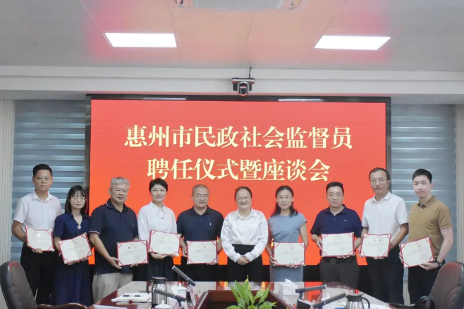 為進一步提升全市民政服務(wù)效能和群眾滿意度,拓寬社會監(jiān)督渠道,廣泛聽取社會各界對民政工作的意見建議,10月17日,惠州市民政局舉行民政社會監(jiān)督員聘任儀式暨座談會。市民政局黨組書記、局長吳素青出席,黨組成員、副局長王守相,三級調(diào)研員黃師燕,各科室負責同志及受聘監(jiān)督員代表參加座談。